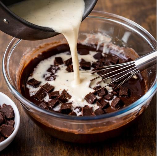 Kremanın kaynatılmaması ve çikolatanın üzerine döküldükten sonra merkezden dışa doğru karıştırılması gerekir.