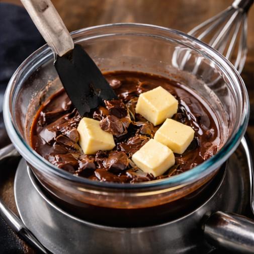 Çikolata ve tereyağı benmari yöntemi ile eritilmelidir.